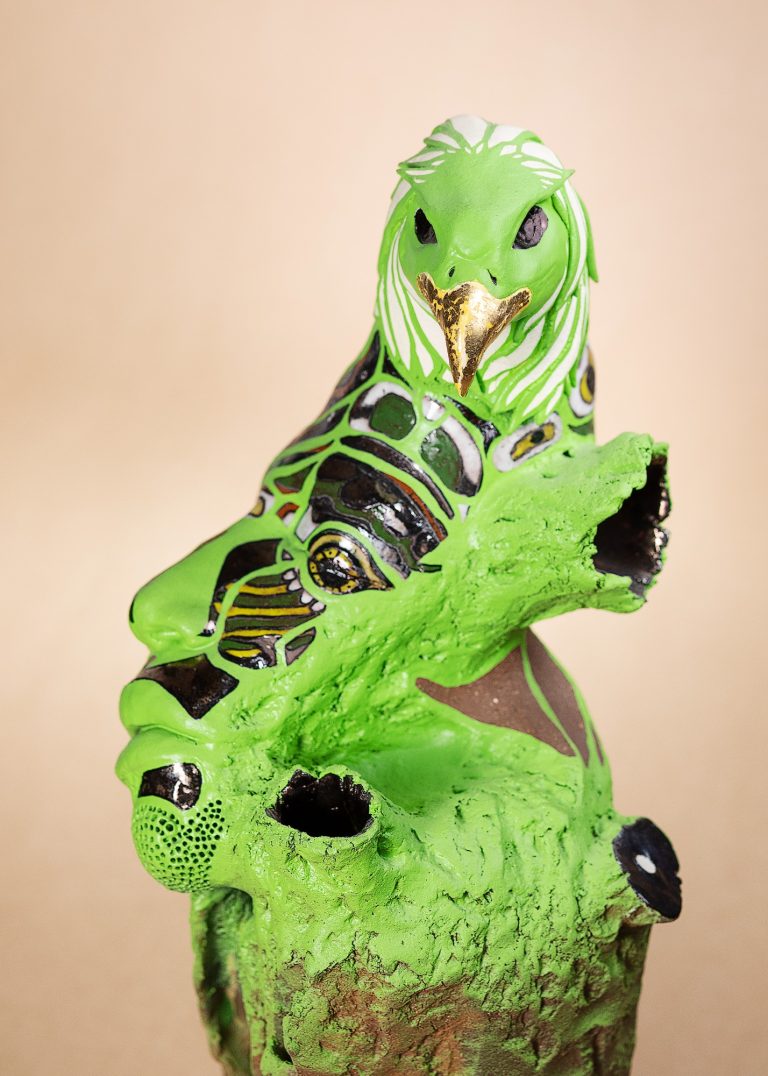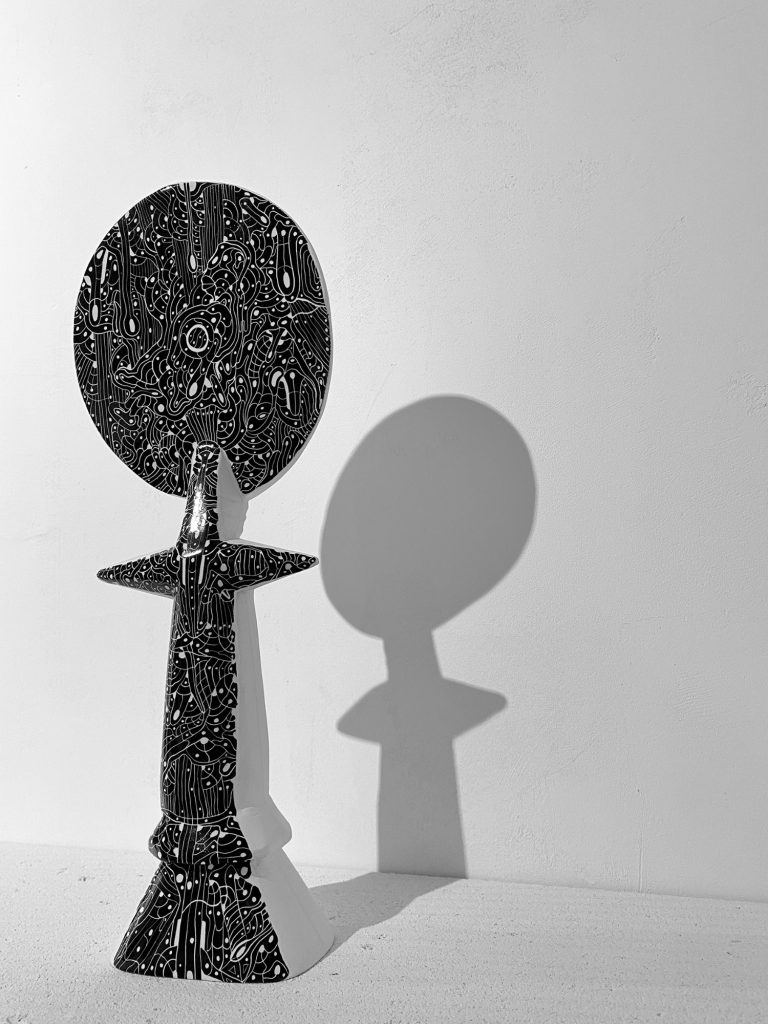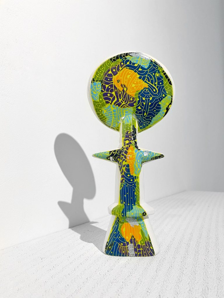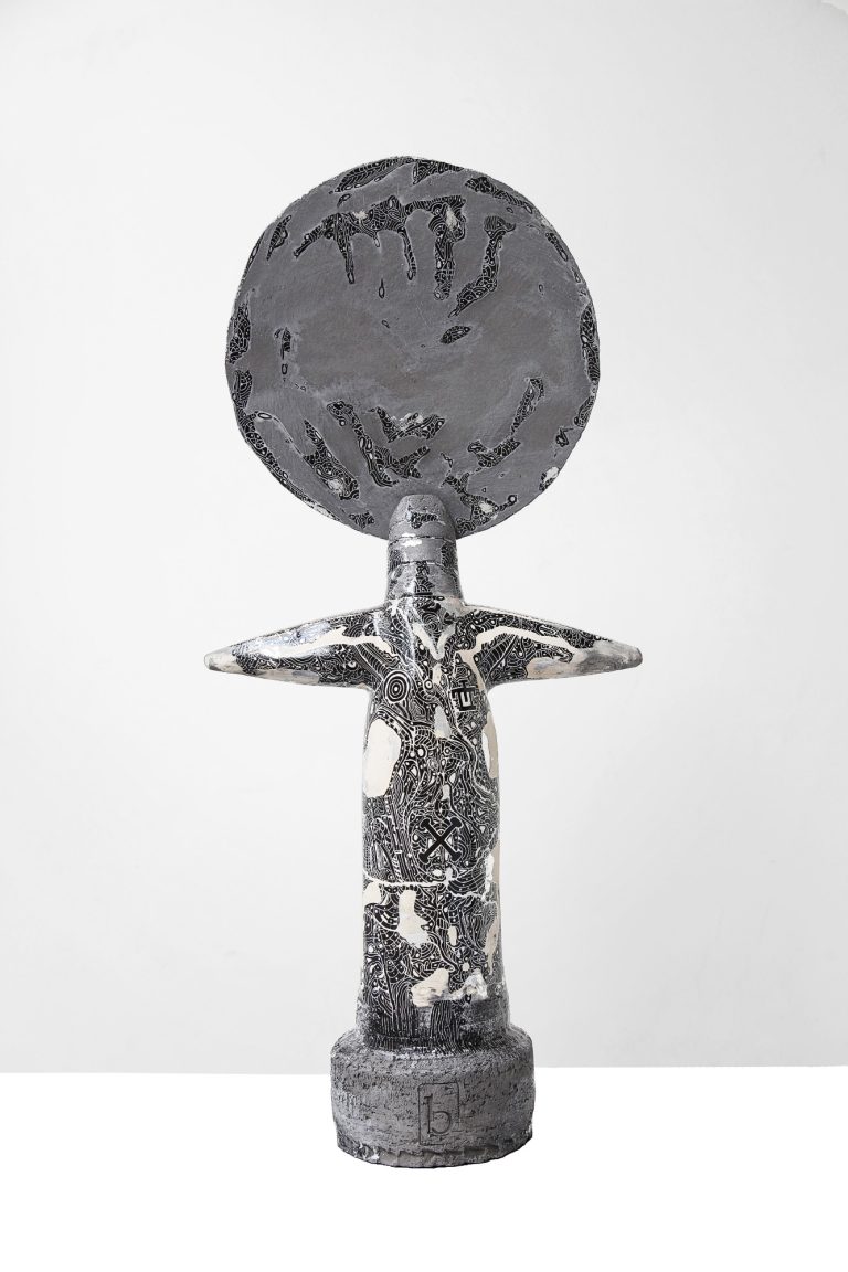 At the center of this circle stands Alkebulan, grounding the installation with its powerful presence. The circular arrangement is not only visually striking but also deeply symbolic, representing the interconnectedness of all beings and the constant dialogue between past, present, and future. The circle encourages viewers to move around and experience the work from multiple perspectives, reflecting the idea of shared existence and multiple viewpoints. Through this harmonious arrangement, Coutinho creates a universe of interaction, where each piece resonates with the others, evoking a deep reflection on the bonds that connect us across time and cultures.